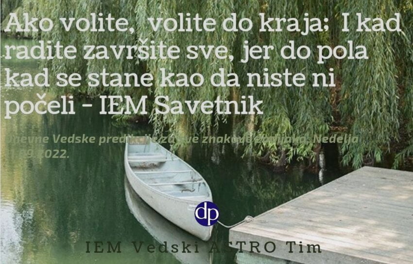 Ako volite, volite do kraja; I kada radite završite sve, jer do pola kad se stane kao da niste ni počeli. IEM Savetnik je vaš vodič kroz dnevne Vedske predikcije za sve znakove zodijaka, Nedelja 11.09.2022.